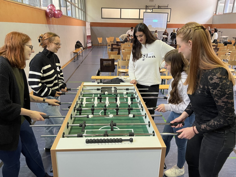 Im Anschluss wurde den Berufsanfänger:innen ein abwechslungsreiches Programm geboten. So konnten sie sich an Reanimationspuppen und beim Ballonturm-Bauen gegenseitig messen. Ein Fußball-Tischkickerspiel und eine Runde „Chinesisch“ beim Tischtennis sorgten für ausreichend Bewegung und Spaß. Dabei kam man schnell ins Gespräch und die anfängliche Schüchternheit verflog mehr und mehr. Weiterhin wurden Möglichkeiten geschaffen, sich auch noch nach Jahren an diesen ersten Tag zu erinnern. Eine Fotobox machte witzige Fotocollagen zum Mitnehmen. Traditionell wurden auch wieder Postkarten mit dem eigenen Wünschen für die Ausbildung ausgefüllt und im Anschluss in den Zeitkapseln einer jeden Ausbildungsrichtung verschlossen. Diese Kapseln werden in den Schulen der Recura Akademie bis zur feierlichen Zeugnisausgabe am Ende der Ausbildung aufbewahrt und dann wieder geöffnet.