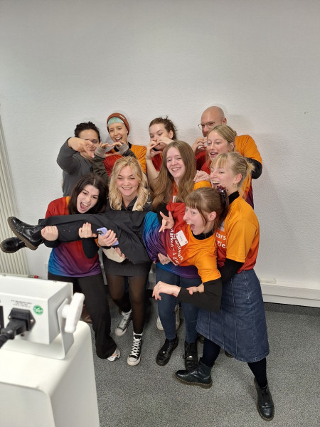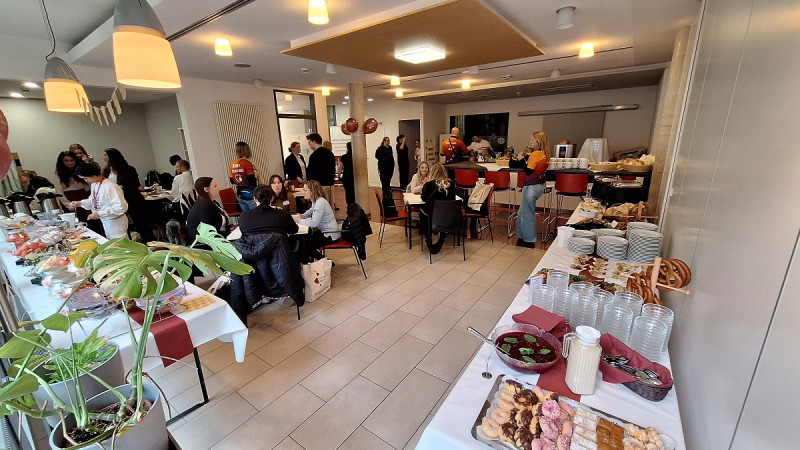Zum Spaßfaktor der Veranstaltung reihten sich auch wichtige dienstliche Themen. So gab die stellvertretende Abteilungsleiterin Personalmanagement - Marit Fleischer - hilfreiche Tipps aus der arbeitsrechtlichen Welt, beispielsweise zum Verhalten Im Krankheitsfall. Und auch der Mitarbeiterausweis wurde quasi „by the way“ gleich mit erstellt. Anna Pinkert und Jennifer Menzel - beide aus dem Recruiting Team - betreuten einen Informationsstand, an dem man sich als potentieller Stammzellspender:in für an Leukämie erkrankte Menschen registrieren lassen konnte.